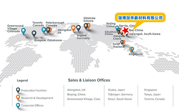 淄博加華新材料資源有限公司(簡稱ZAMR)和淄博加華新材料有限公司(簡稱NAMCO)均是由加拿大NEO集團(全稱Neo Performance Materials)與淄博世佳工貿有限公司聯合投資創建的中外合資企業。ZAMR公司成立于1993年,主要從事稀土分離冶煉,主要產品有氧化鑭、氧化鈰、氧化鐠、氧化釹、碳酸鑭、硝酸鑭、醋酸鑭、碳酸鈰、硝酸鈰、醋酸鈰、氫氧化鈰、硝酸鈰銨、氧化釔鋯、超細氧化鋯、氫氧化鋯、堿式碳酸鋯等;NAMCO公司主要從事汽車尾氣催化材料、稀土應用產品的研發及生產制造業務,主要產品有鈰鋯汽車尾氣催化材料、柴油車尾氣催化材料等,是國內外重要的稀土應用及深加工產品研發制造基地,公司目前是世界單體產量最大的汽車尾氣催化材料生產企業,產品廣泛應用于各種汽車柴油車,技術水平居于國際領先水平。